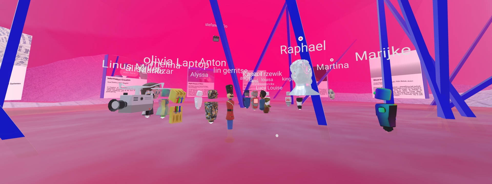 At the end of august 2020 I was a coach at ChampdAction LAbO, an interdisciplinary summer school bringing dancers, musicians, composers and visual artists together to create art. Traditionally organised in deSingel in Antwerp, this year's edition took fully place online, using Mozilla Hubs as our virtual space.